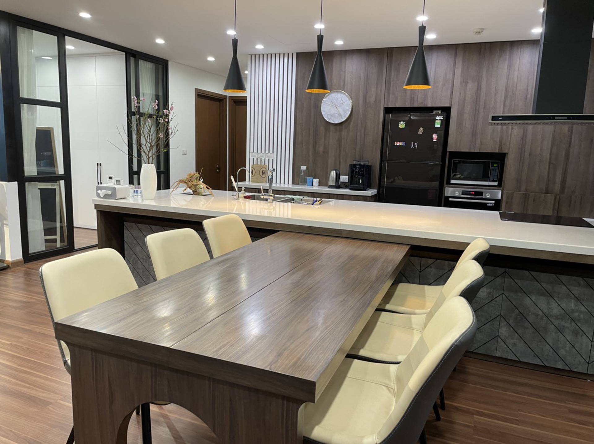 - Nội thất tông màu cà phê trang nhã: Nội thất của căn hộ được lựa chọn kỹ càng từ các thương hiệu Nhật Bản với đường nét gọn gàng, tinh tế và tông màu chủ đạo là cà phê. Màu sắc này kết hợp với ánh đèn vàng tạo nên một không gian ấm cúng và thư giãn.