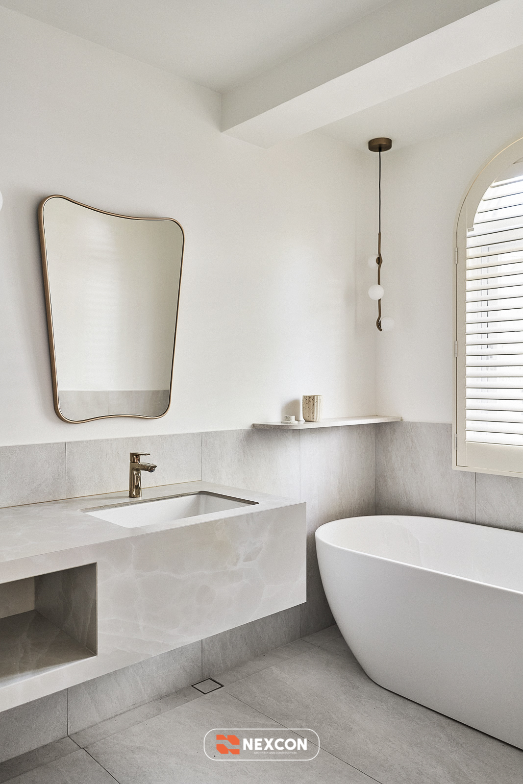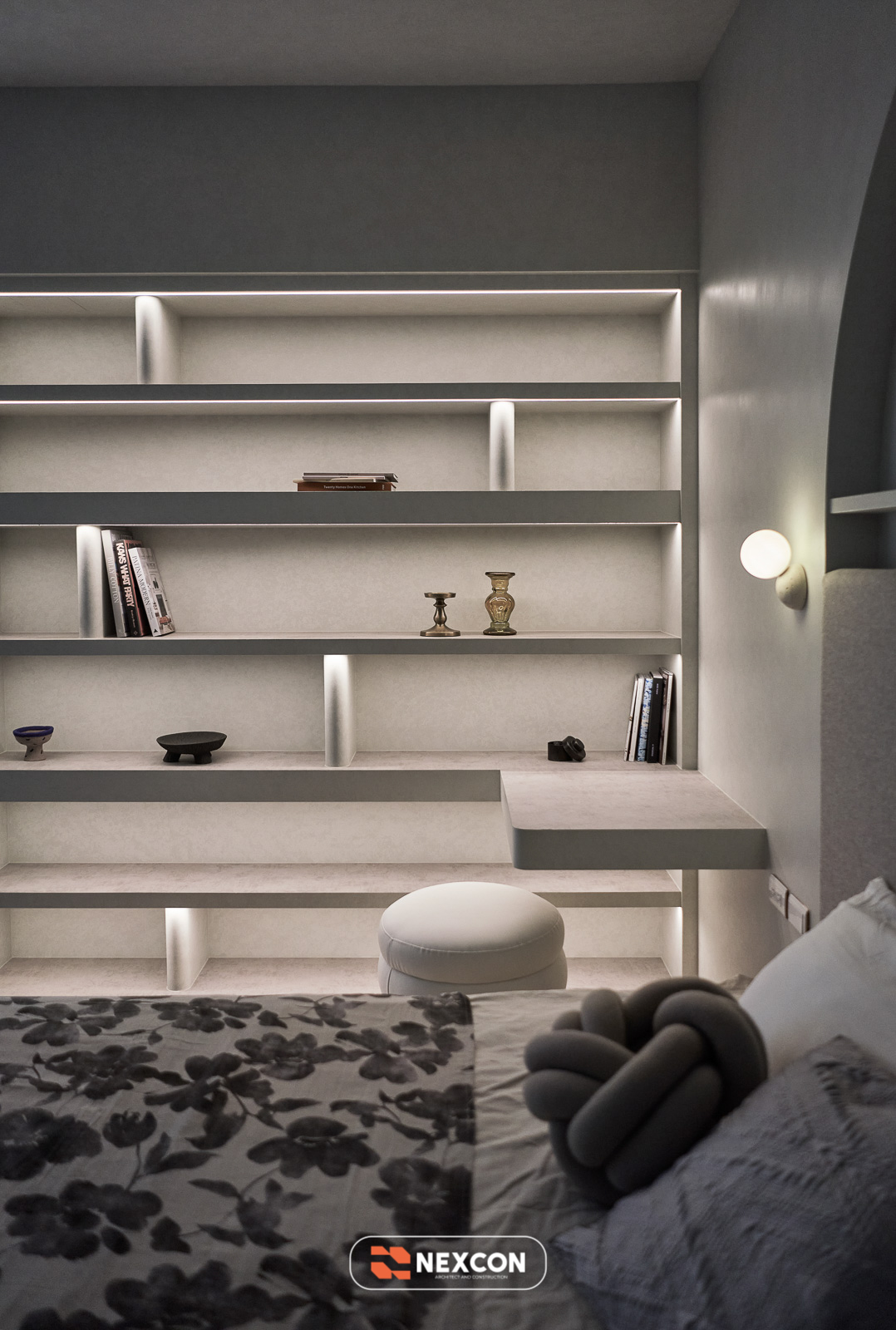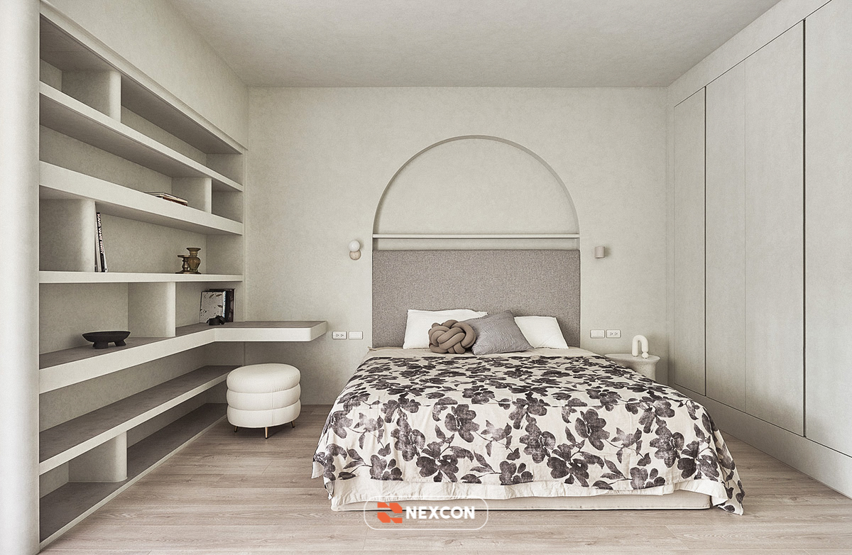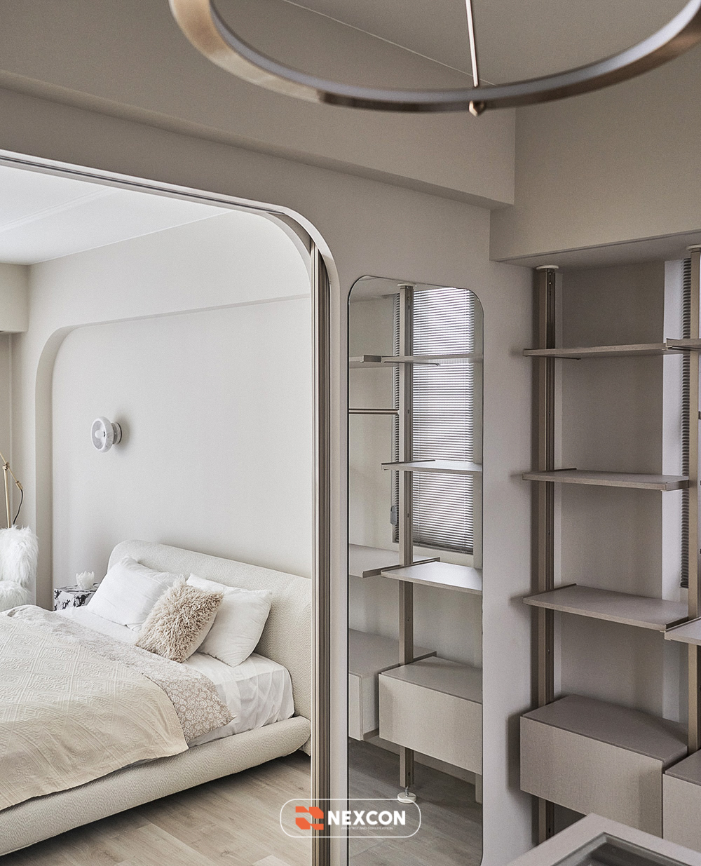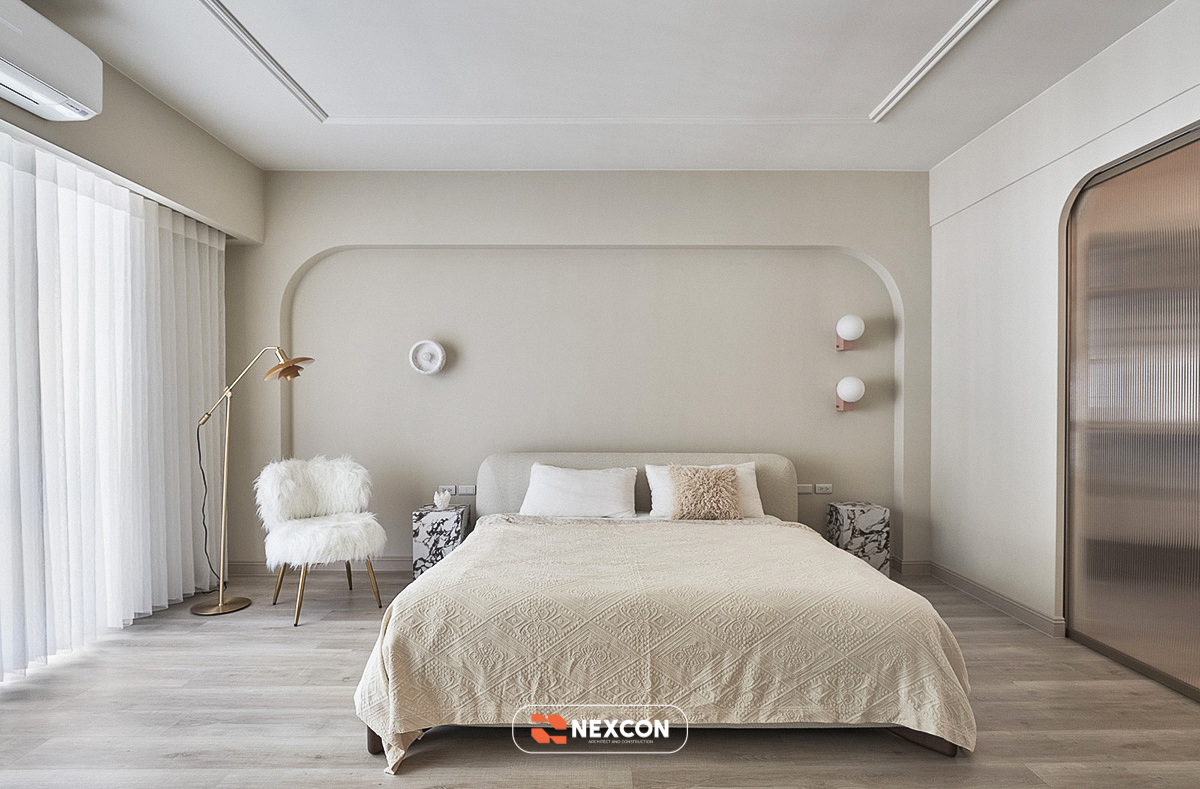 Các đường nét chạm khắc phức tạp của ngôi nhà ban đầu đã bị phai màu và chỉ giữ lại một số yếu tố phong cách châu Âu, được sơn màu trắng tinh khiết, sau đó được thêm các hình vòng cung và mái vòm để phác thảo bầu không khí đơn giản nhưng cổ điển, tái tạo cảm giác không gian cao và rộng mở.