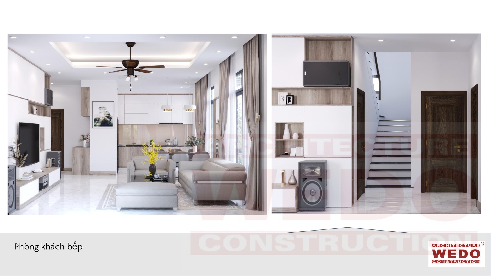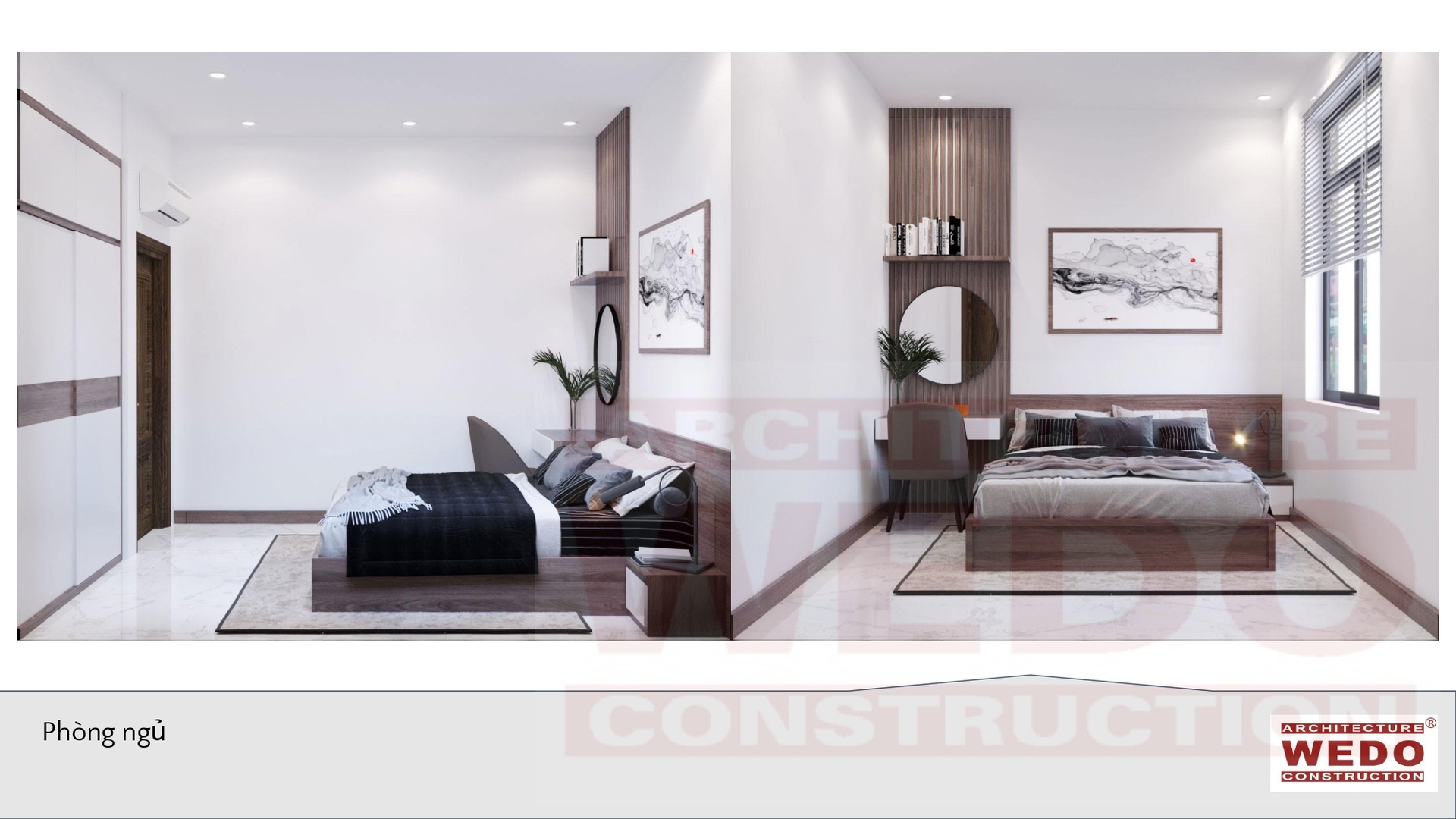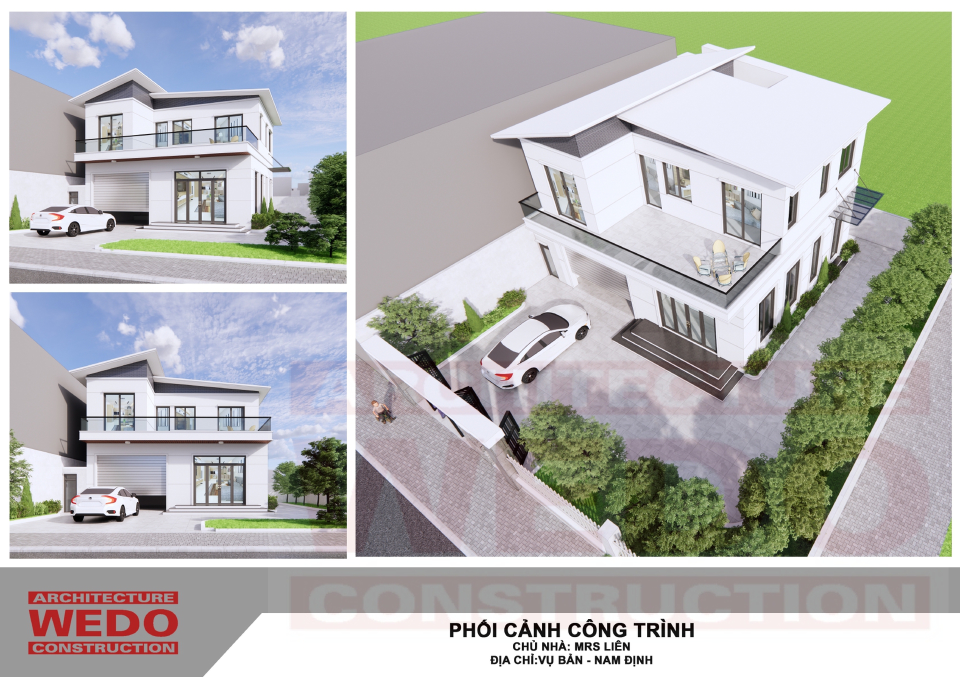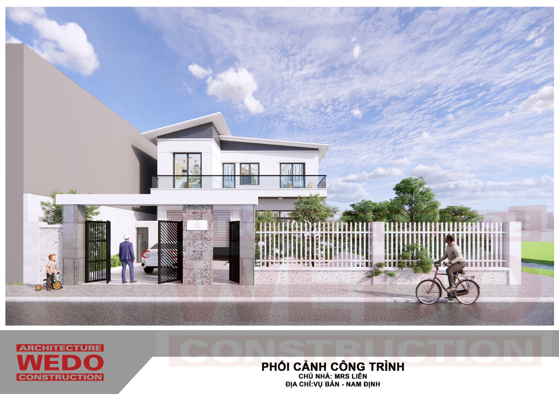 Công trình được thiết kế theo phong cách hiện đại, mái lệch đang được rất nhiều chủ đầu tư ưa chuộng trong thời gian gần đây. Khi chủ nhà - chị Liên nói rằng, nhà mình không thích kiểu mái ngói truyền thống, không thích mái bằng và cũng không dự định làm mái Thái giống rất nhiều công trình đang được sản xuất hàng loạt nhưng đừng phá cách quá, Wedo đã nghiên cứu, tính toán và gửi đến chị cùng gia đình thiết kế nhà 2 tầng hiện đại mái lệch.