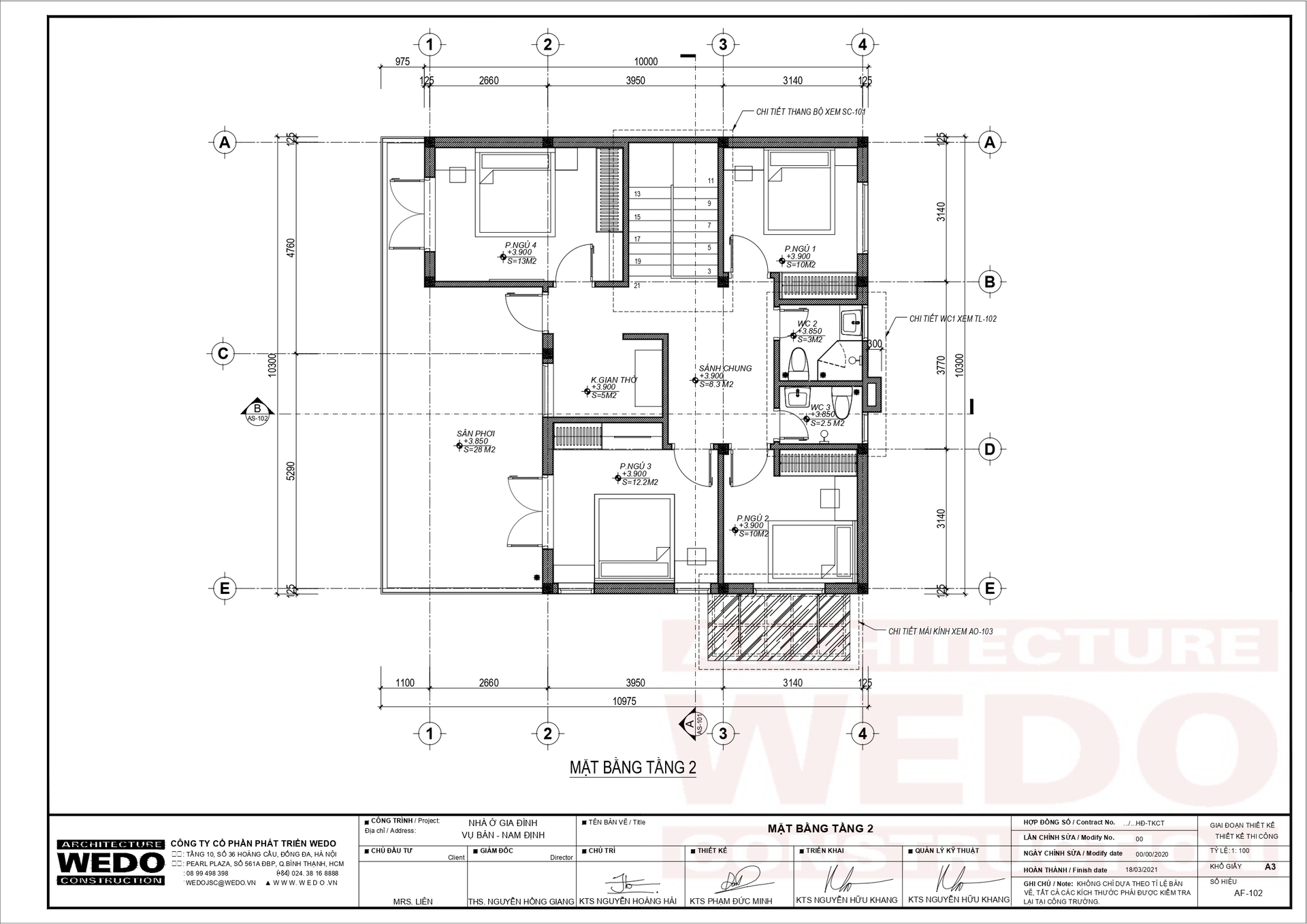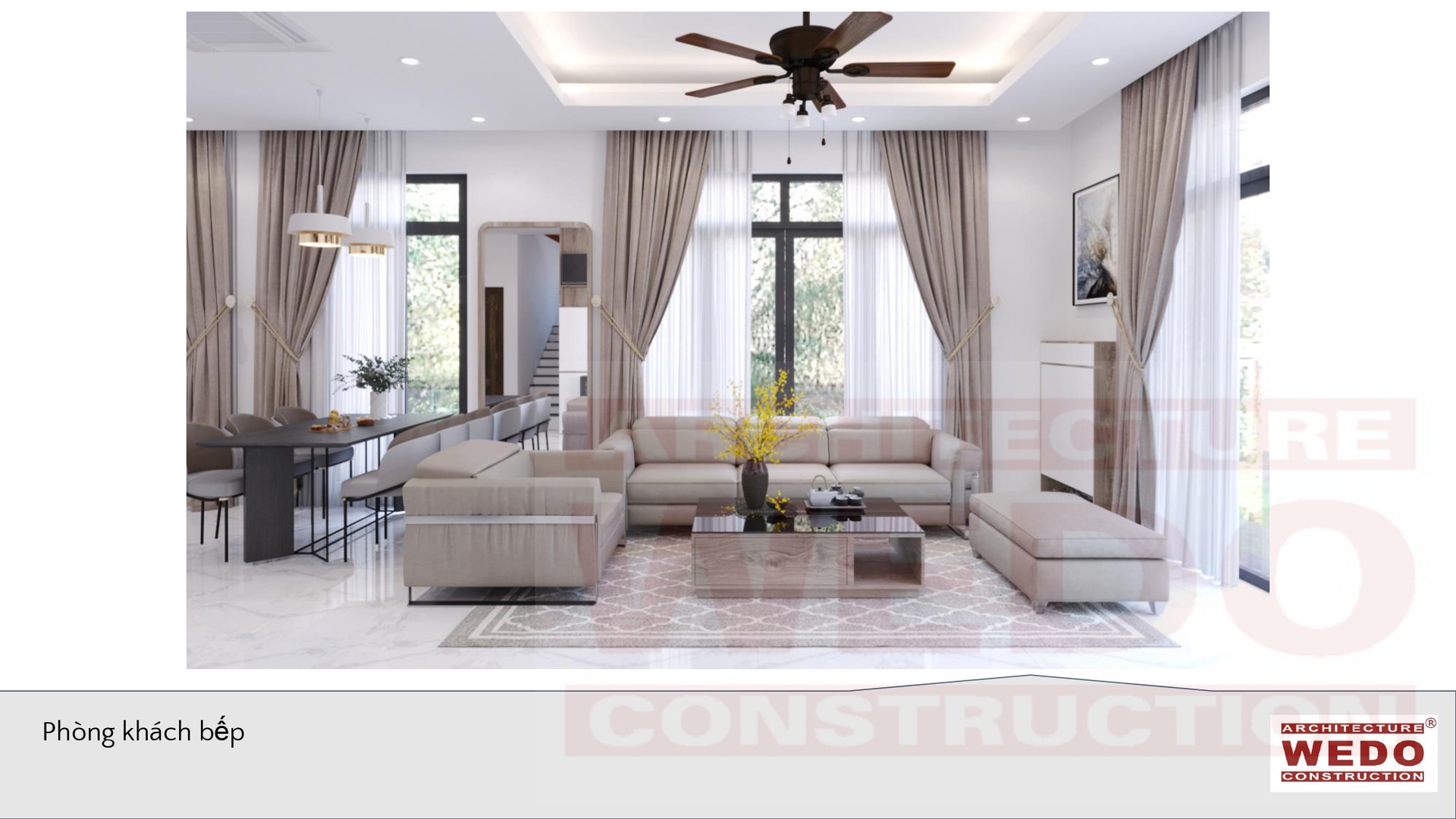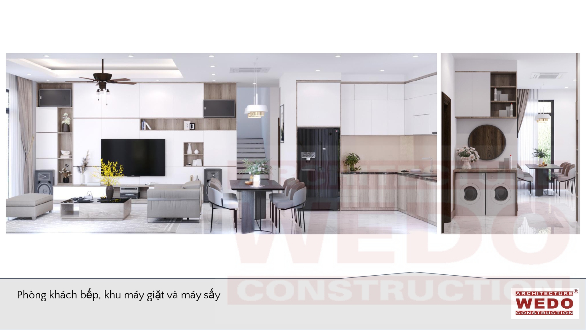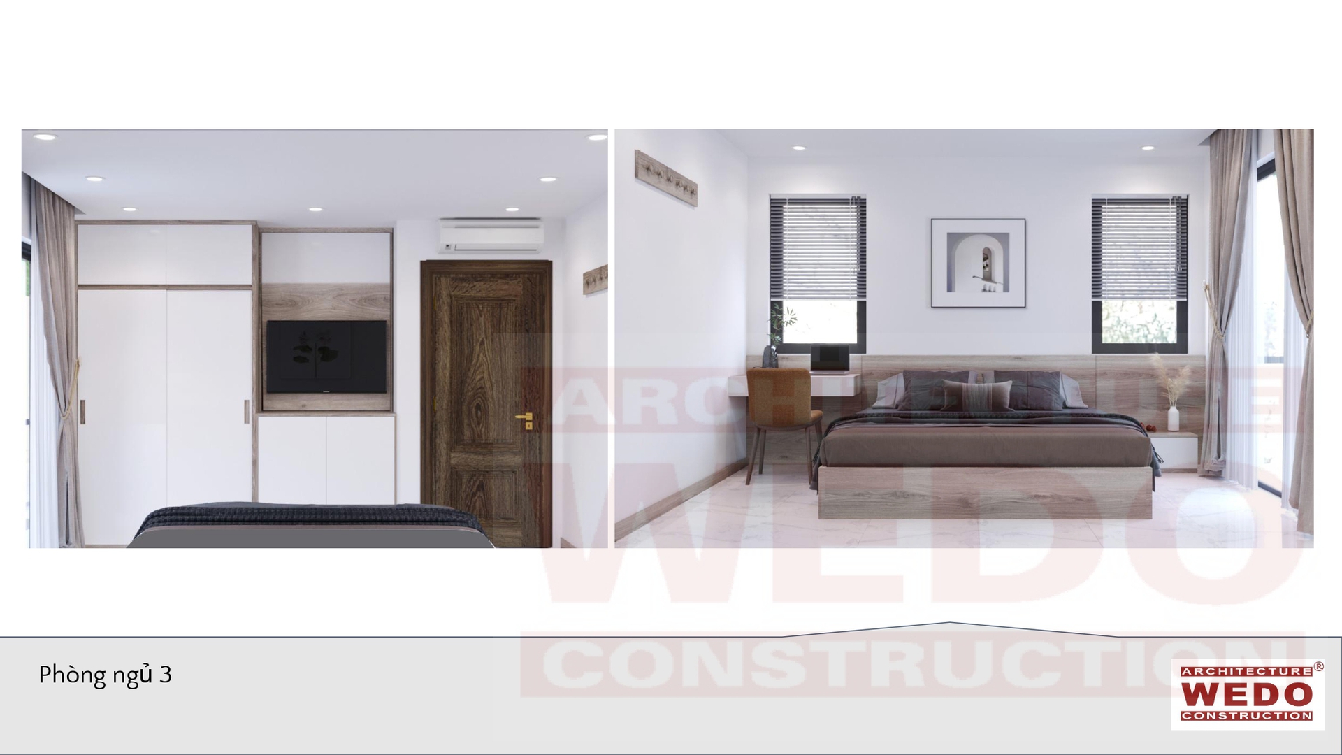 Công trình được thiết kế theo phong cách hiện đại, mái lệch đang được rất nhiều chủ đầu tư ưa chuộng trong thời gian gần đây. Khi chủ nhà - chị Liên nói rằng, nhà mình không thích kiểu mái ngói truyền thống, không thích mái bằng và cũng không dự định làm mái Thái giống rất nhiều công trình đang được sản xuất hàng loạt nhưng đừng phá cách quá, Wedo đã nghiên cứu, tính toán và gửi đến chị cùng gia đình thiết kế nhà 2 tầng hiện đại mái lệch.